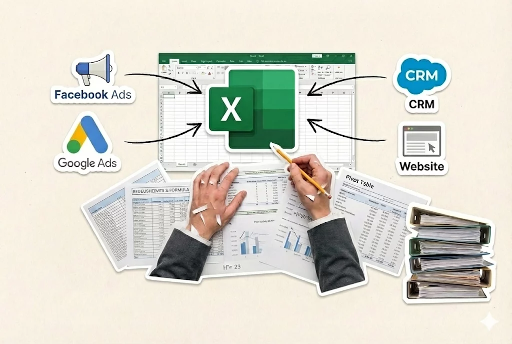 Mặc dù Facebook Ads Manager là một công cụ mạnh mẽ, việc đo lường quảng cáo Facebook trực tiếp trên nền tảng này thường bộc lộ những hạn chế nhất định. Dữ liệu có xu hướng phân tán giữa các cấp độ khác nhau như tài khoản, chiến dịch, nhóm quảng cáo và quảng cáo, yêu cầu các nhà tiếp thị phải liên tục thay đổi giao diện để tổng hợp thông tin. Hơn nữa, việc xuất báo cáo thủ công và tổng hợp trên các ứng dụng bảng tính không chỉ làm mất nhiều thời gian mà còn tiềm ẩn nguy cơ sai sót cao, đặc biệt đối với các chu kỳ báo cáo định kỳ. Những yếu tố này cản trở khả năng có được cái nhìn toàn diện, so sánh hiệu quả giữa các chiến dịch, và đưa ra các quyết định tối ưu một cách kịp thời.